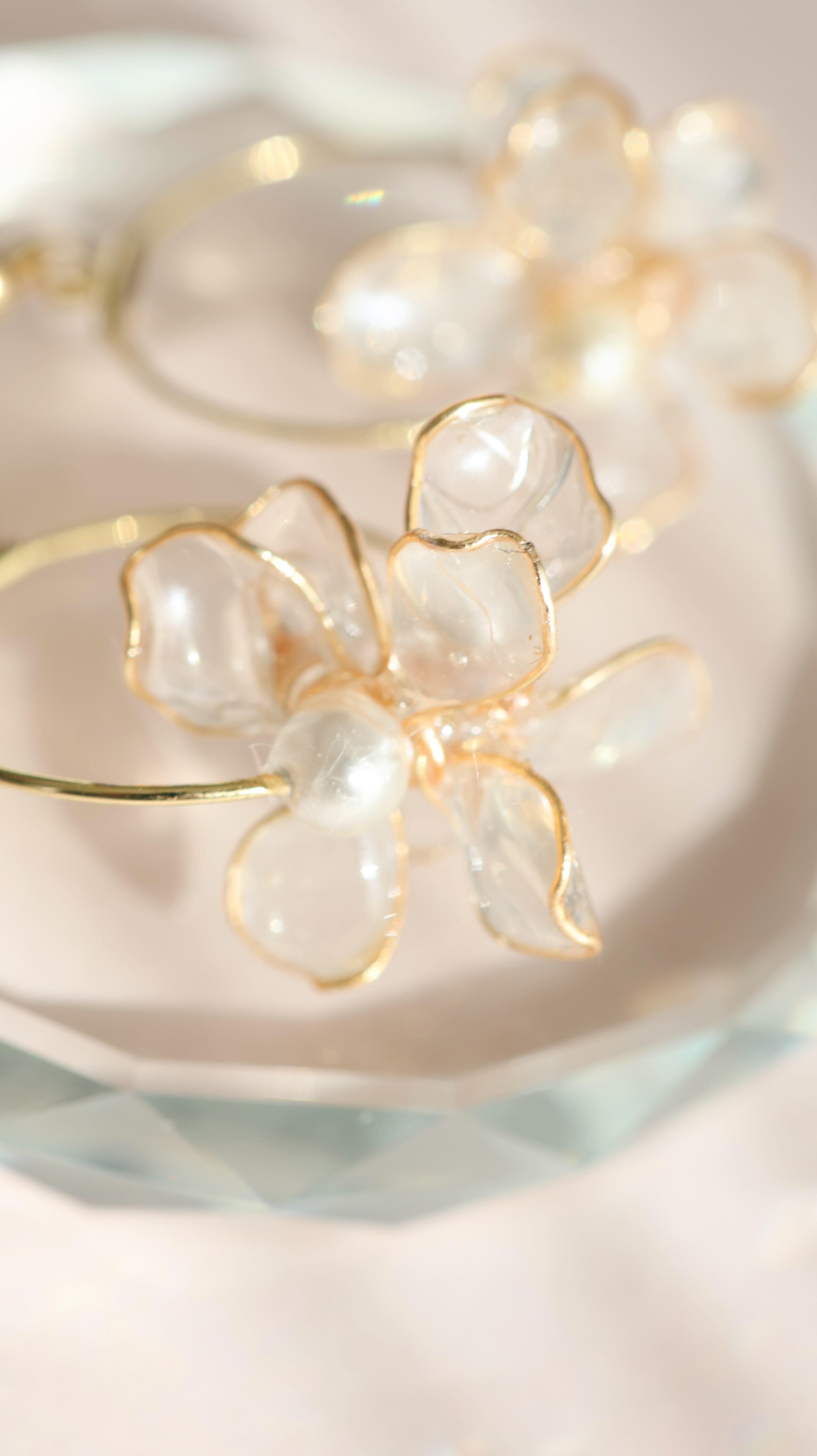 やわらかな花びらを包むゴールドの輪に、