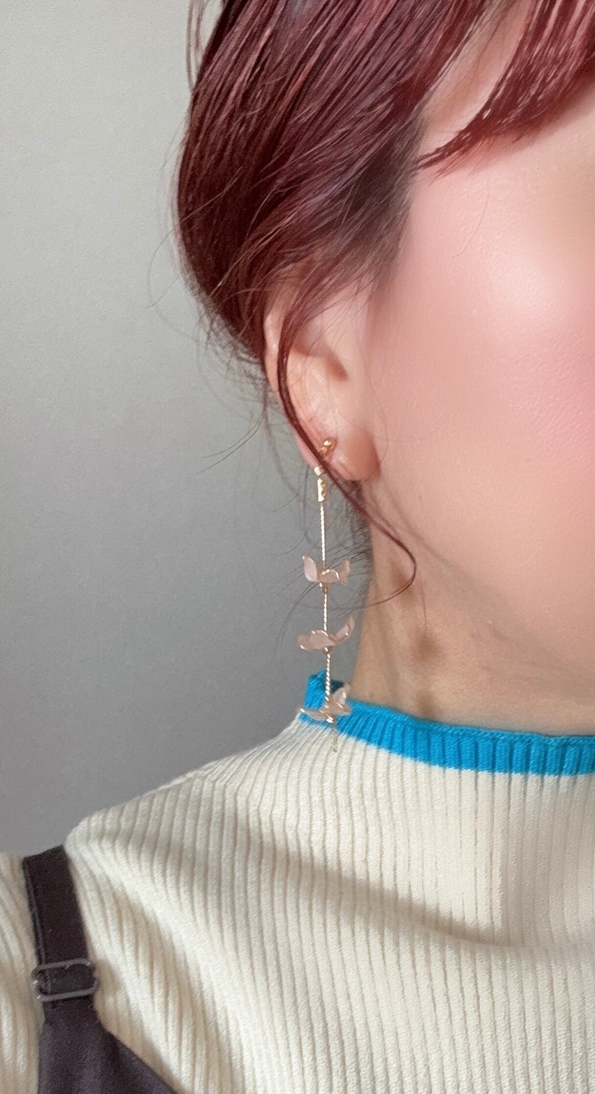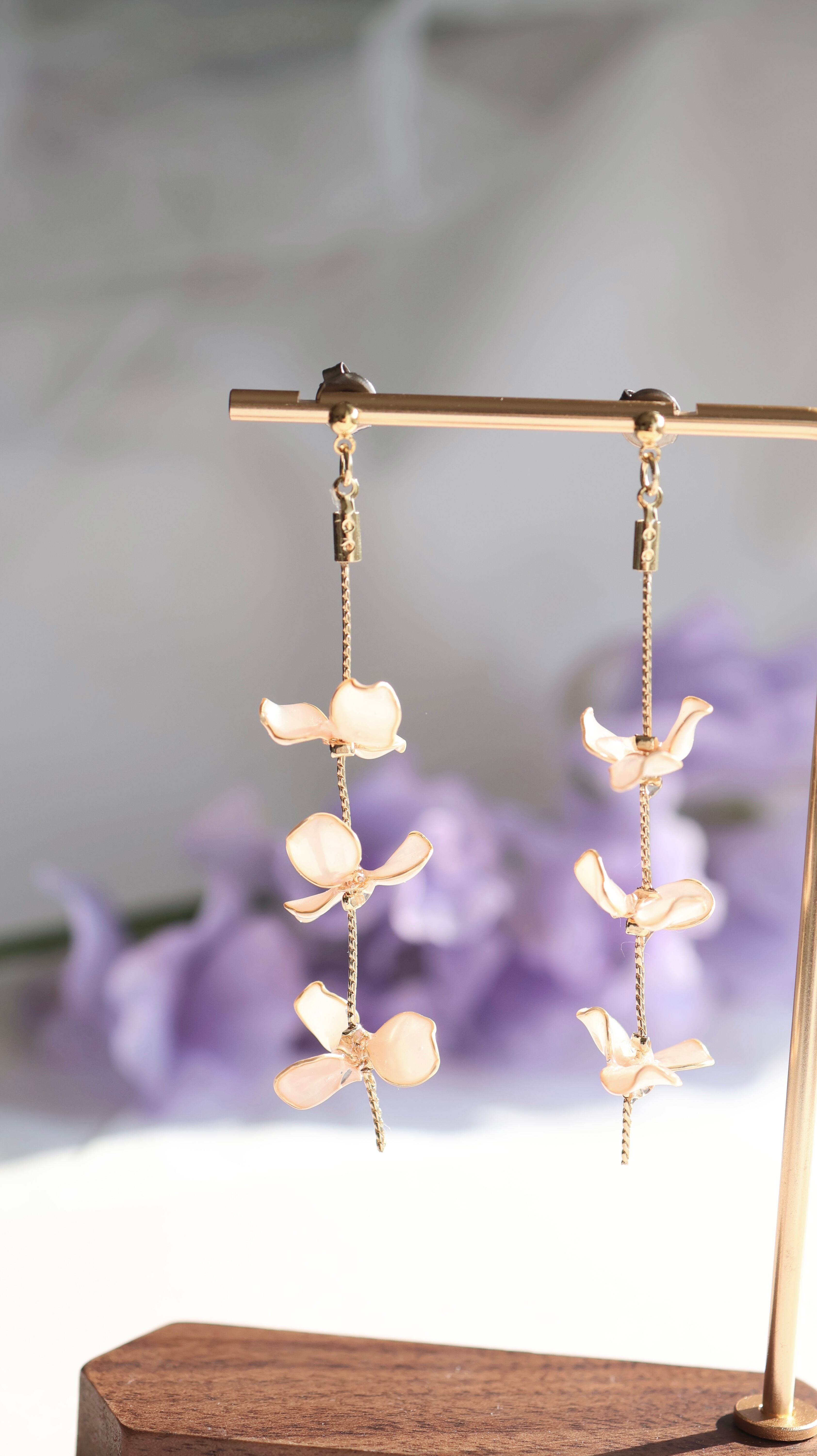 淡いピンクの花びらが揺れるアクセサリー